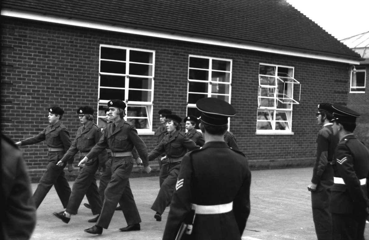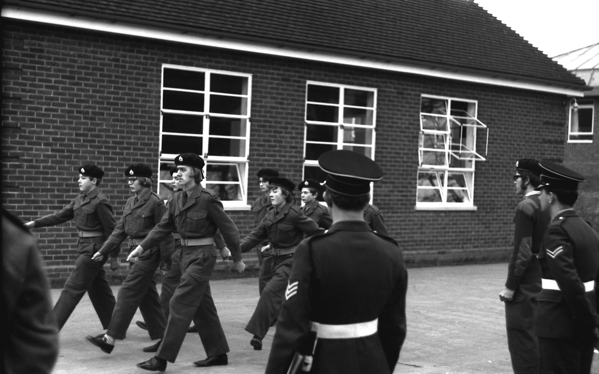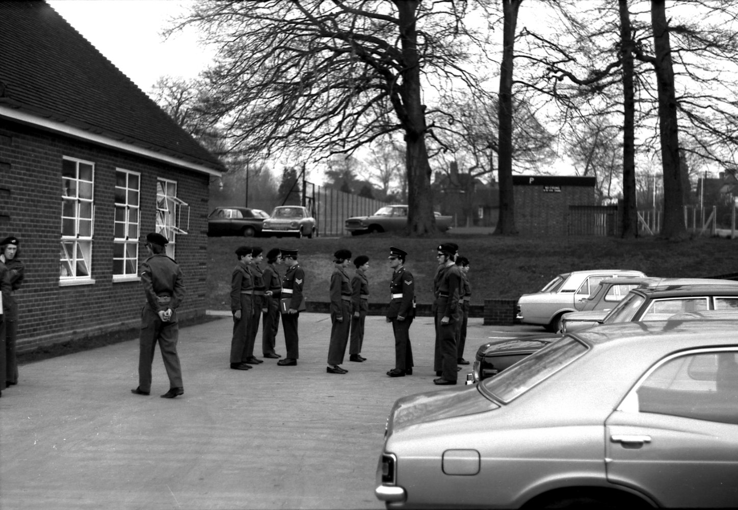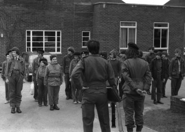 Combined Cadet Force parade - at the back the tennis courts and pupil car park. Orienteering around Hawley Lake (For Duke of Edinburgh's Award?) WWII combat uniforms - very itchy! Sea cadets building a dinghy. Fire DrillDisco
