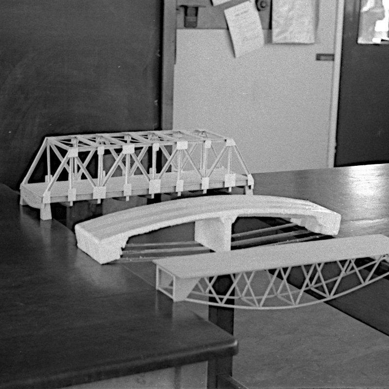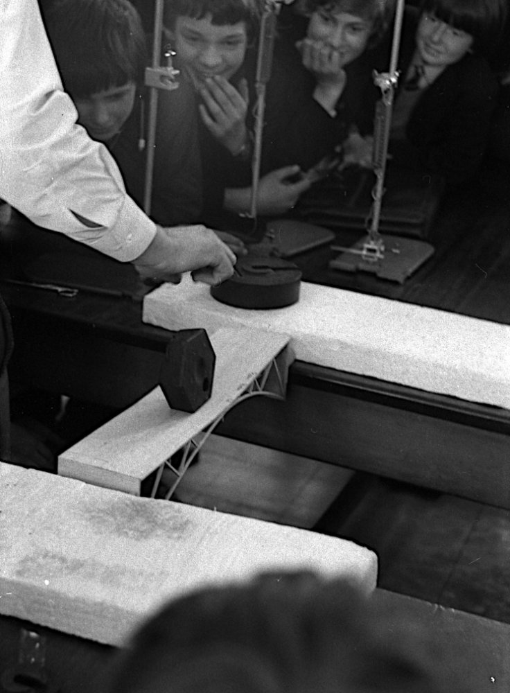 The Design & Technology department - Technical drawing was also taught there. Testing if the designs of bridge would hold the weight Weighted vehicle drawn across the bridges The "heavy" vehicle used to test the bridges Lunch-timeScience Labs